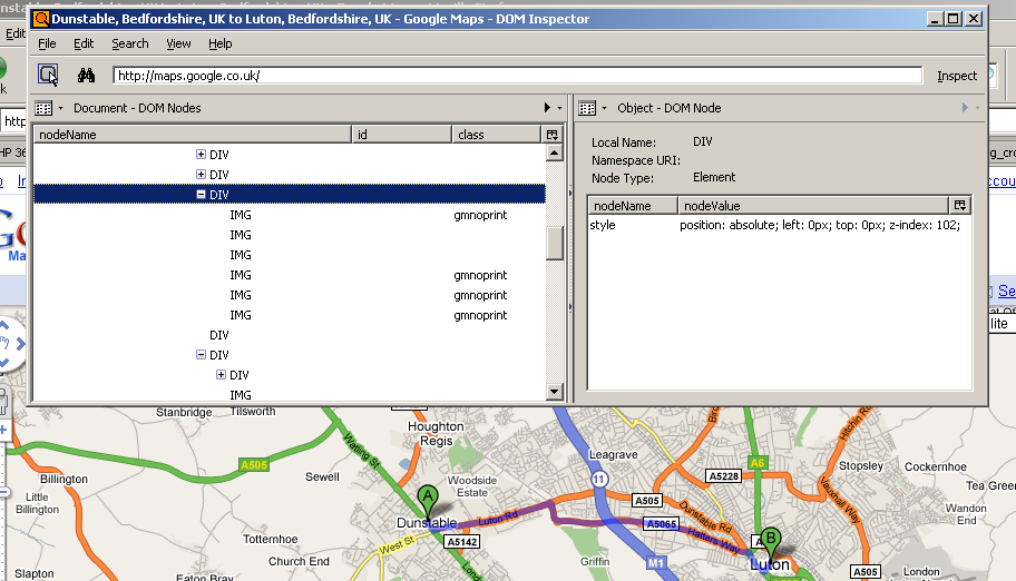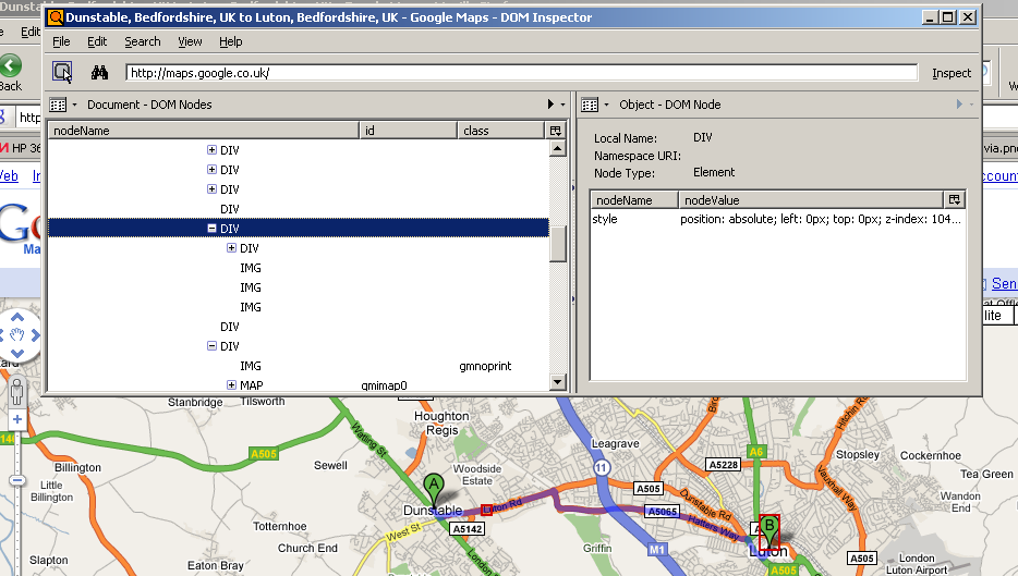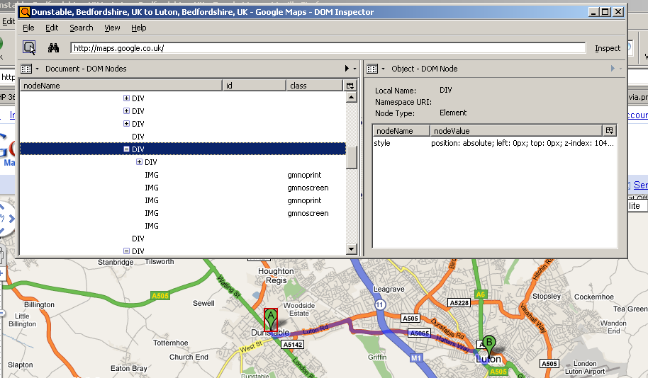 Using DOM Inspector, I found where in the DOM Google is storing the 'pin marker' images. They're inside a DIV, and they're positioned absolutely. Google Maps places them in exactly the correct position as to overlay the map. Fine so far. However, there are only 2 'pin marker' graphics. Why are there 4 IMGs there (the fifth one is just a transparent IMG that doesn't really have relevance to this discussion)? The answer is that Google Maps uses two images for each 'pin marker' - one to be displayed on-screen, and one to be displayed when printing. The CSS style rules contained in the 'gmnoprint' class cause this content only to be displayed on screen, and the CSS style rules contained in the 'gmnoscreen' class cause this content only to be displayed when printing. Those two images with the 'gmnoprint' class are transparent PNGs, which is why the 'pin markers' display fine on screen. Those two images with the 'gmnoscreen' class are NON-transparent GIFs, which is why the 'pin markers' display horribly when printing.