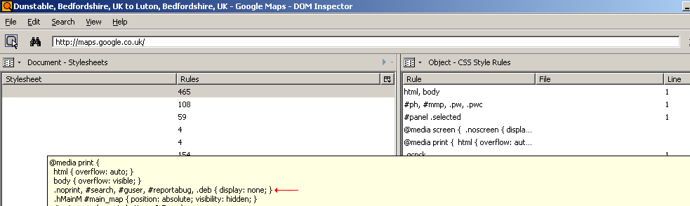 For those of us who've tried to print directions in Google Maps, or for that matter anything that involves Google's 'pin marker' graphics, a frequent annoyance is that wherever the 'pin marker' is, anything behind its image is completely obscured, instead of the marker appearing with a transparent background. I always thought this was a bug in Firefox, but after some investigation it appears that Firefox is fine, and Google Maps specifically causes this behaviour.